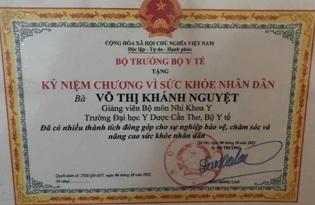 Ngoài ra Thành tích của cá nhân BS CK2 VÕ THỊ KHÁNH NGUYỆT Đã đạt được như: